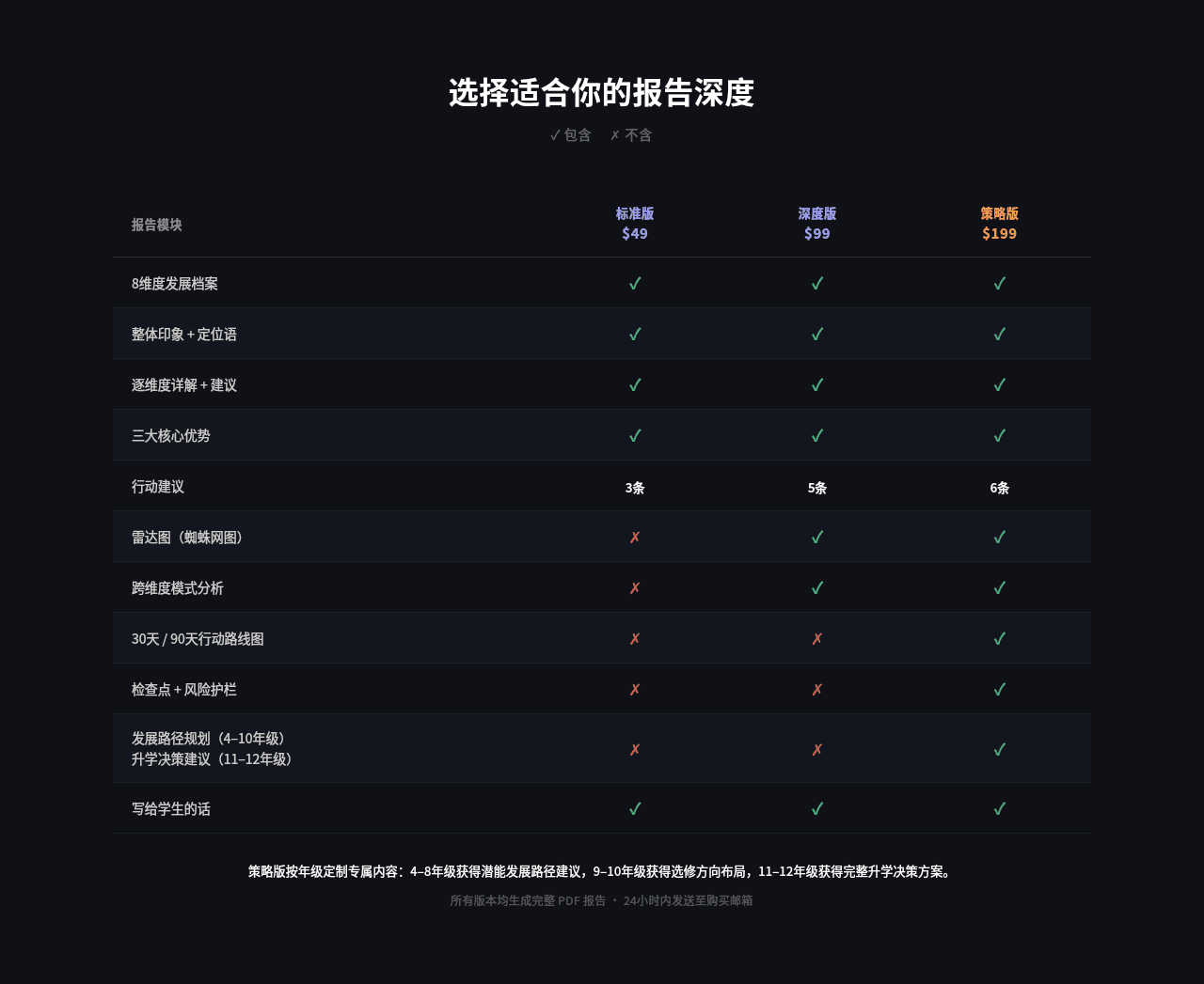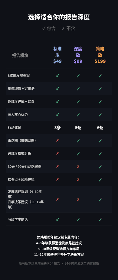 • 针对年级阶段的个性化建议